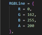 Si vous souhaitez changer la couleur des lignes dans les menus, allez dans le dossier wCore, puis dans le dossier config, et ouvrez le fichier config.lua, modifiez uniquement les valeurs, R,G,B (guide des couleurs ici)