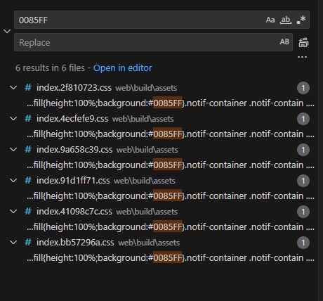 Ouvrez wNotif avec VCode, puis faites une recherche avec #0085FF et mettez votre couleur en HEX.